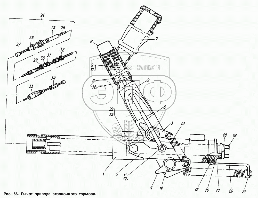 Каталог запасных частей к технике: МАЗ-6317. Рычаг привода стояночного тормоза