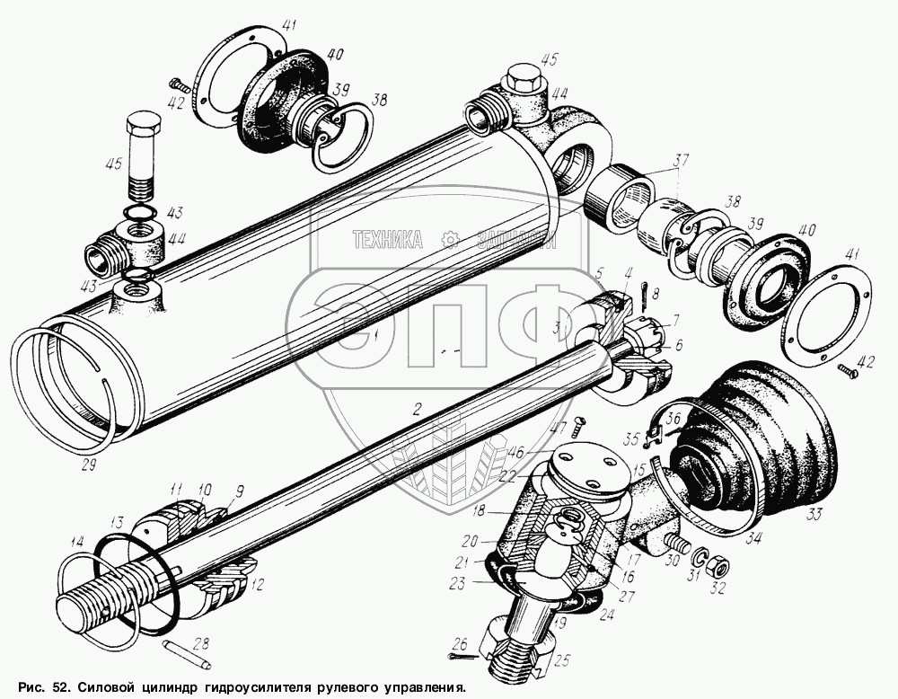 Каталог запасных частей к технике: МАЗ-6317. Силовой цилиндр гидроусилителя рулевого управления