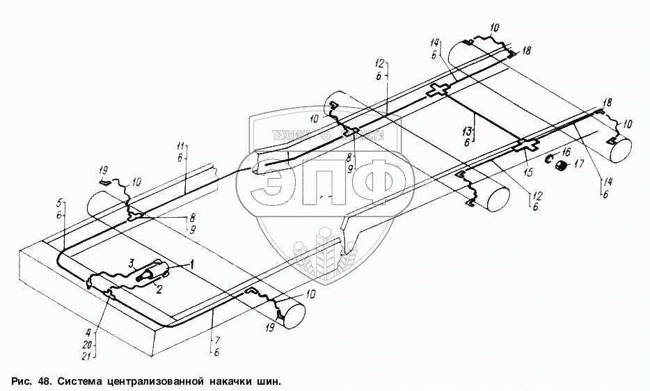 Каталог запасных частей к технике: МАЗ-6317. Система централизованной накачки шин