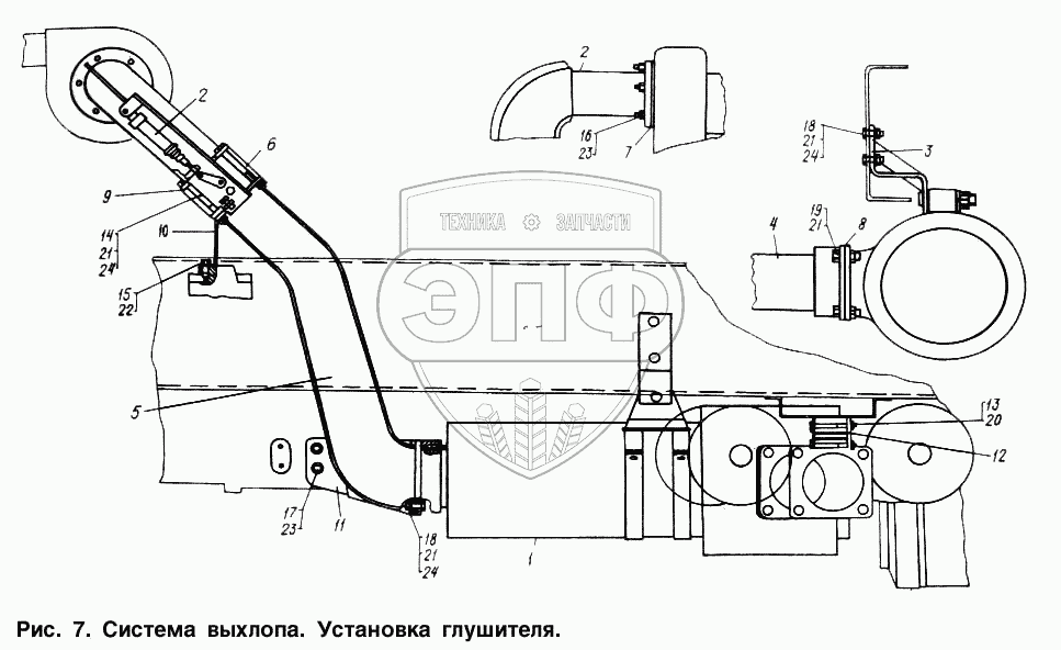 Каталог запасных частей к технике: МАЗ-6317. Система выхлопа. Установка глушителя