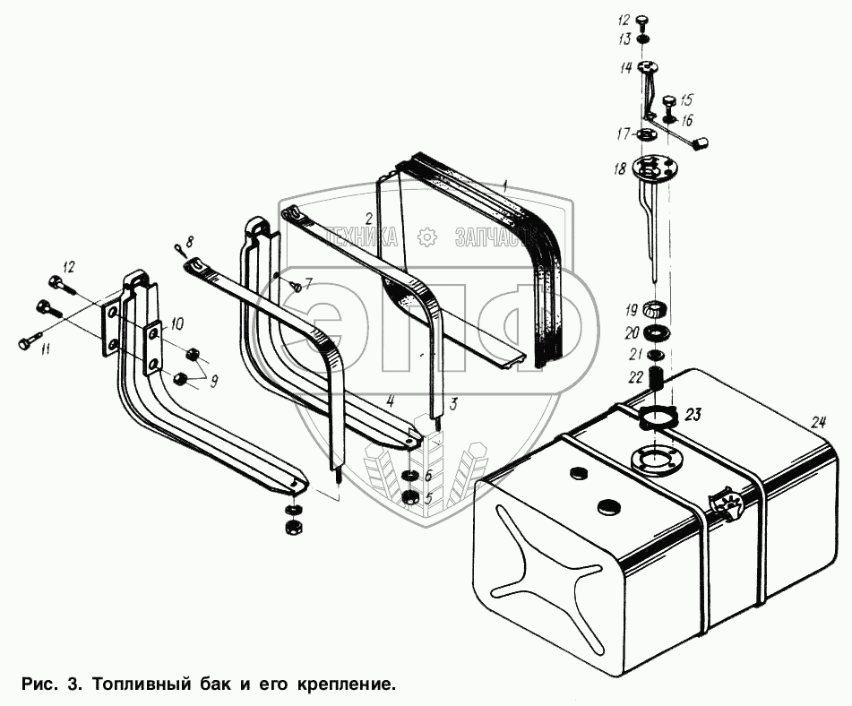 Каталог запасных частей к технике: МАЗ-6317. Топливный бак и его крепление