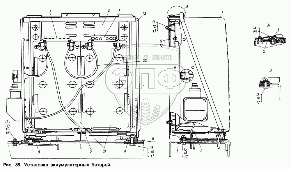 Каталог запасных частей к технике: МАЗ-6317. Установка аккумуляторных батарей