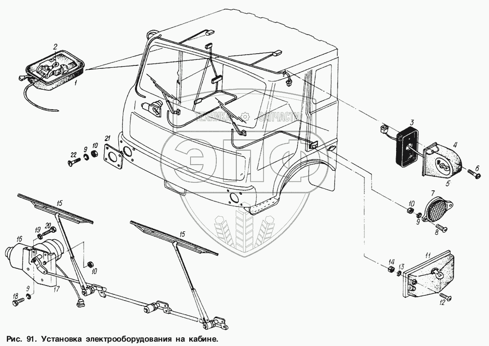 Каталог запасных частей к технике: МАЗ-6317. Установка электрооборудования на кабине