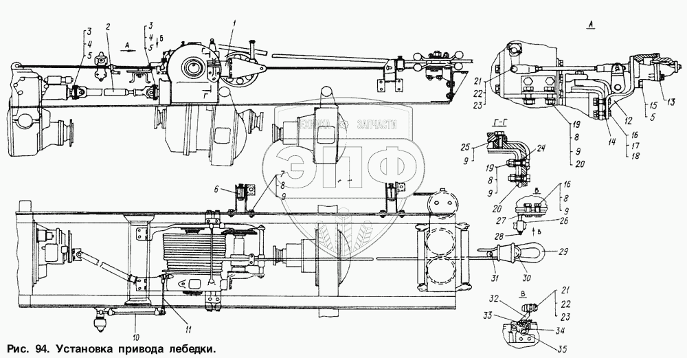 Каталог запасных частей к технике: МАЗ-6317. Установка привода лебедки