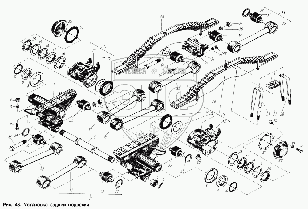 Каталог запасных частей к технике: МАЗ-6317. Установка задней подвески