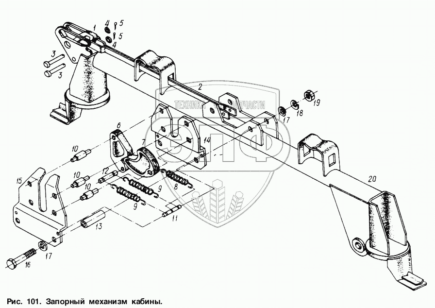 Каталог запасных частей к технике: МАЗ-6317. Запорный механизм кабины