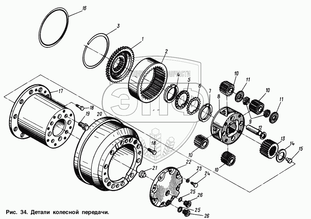 Каталог запасных частей к технике: МАЗ-64221. Детали колесной передачи
