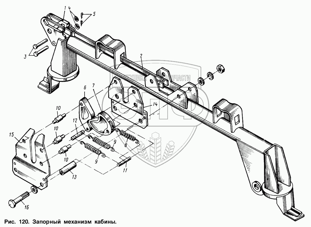 Каталог запасных частей к технике: МАЗ-64221. Запорный механизм кабины