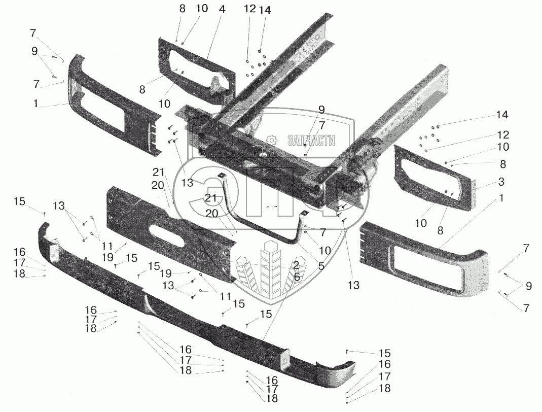 Каталог запасных частей к технике: МАЗ-6422. Крепление бампера