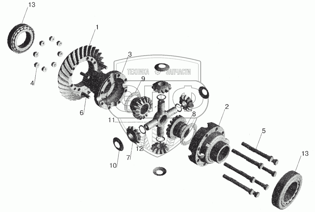 Каталог запасных частей к технике: МАЗ-6422. Мост задний МАЗ-543208. Дифференциал
