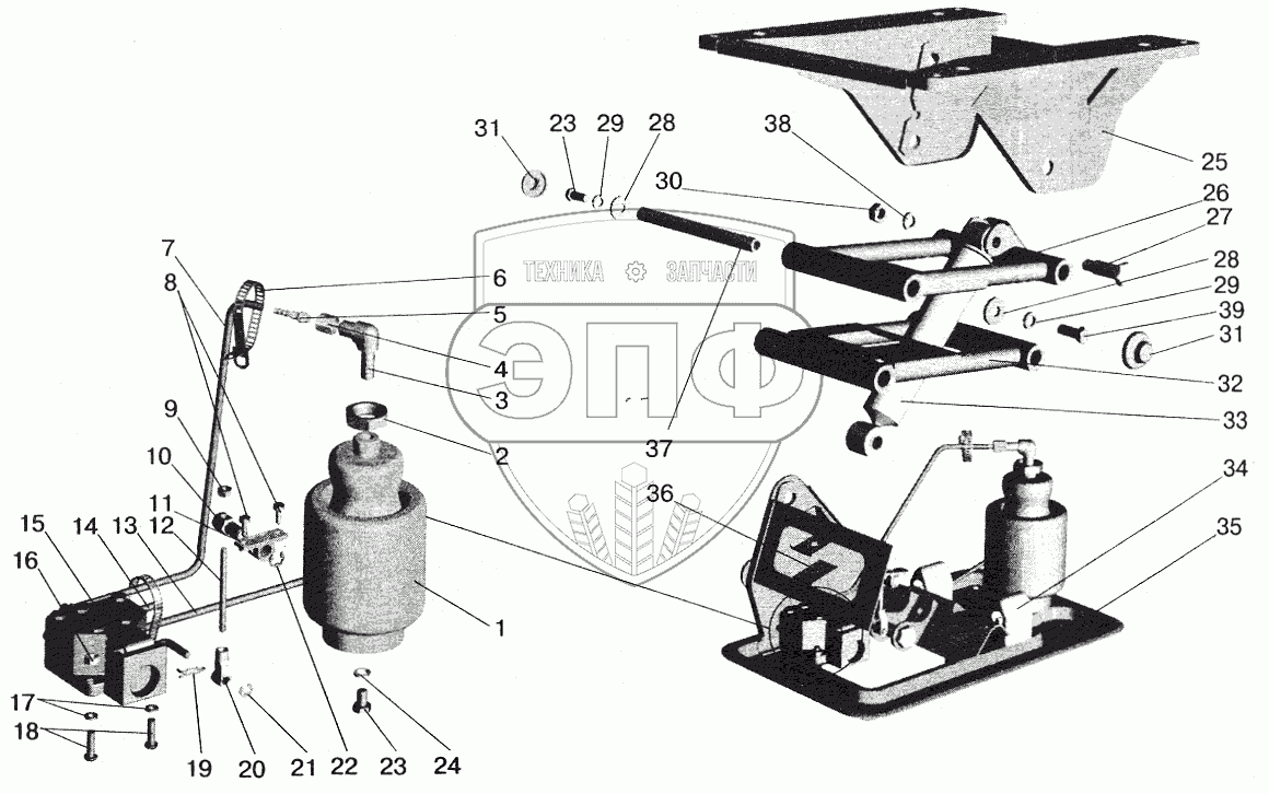 Каталог запасных частей к технике: МАЗ-6422. Подставка сиденья с пневмооборудованием