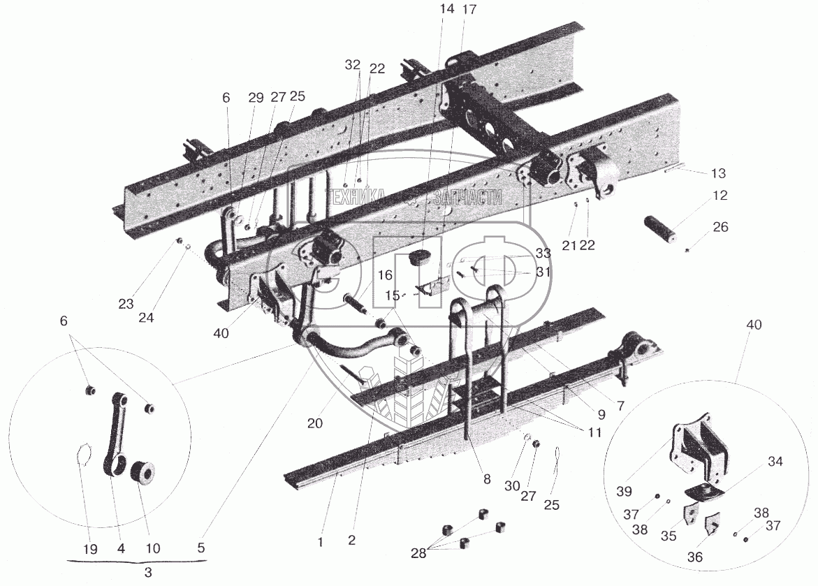Каталог запасных частей к технике: МАЗ-6422. Подвеска задняя 54321-2900002-10