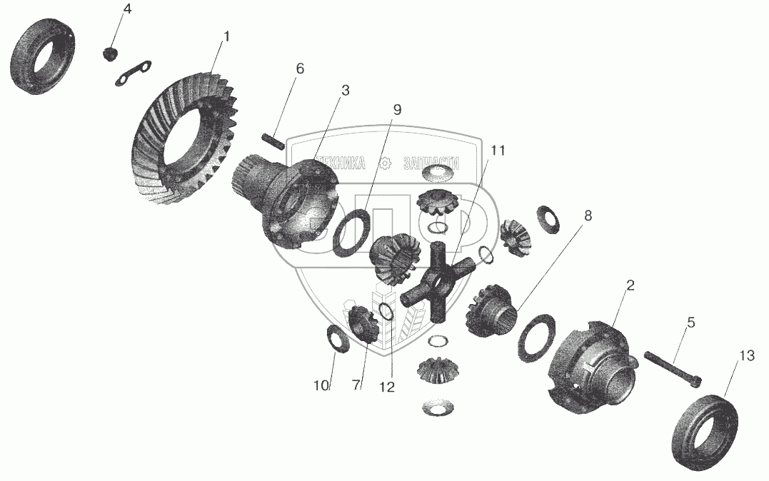 Каталог запасных частей к технике: МАЗ-6422. Редуктор среднего моста. Дифференциал