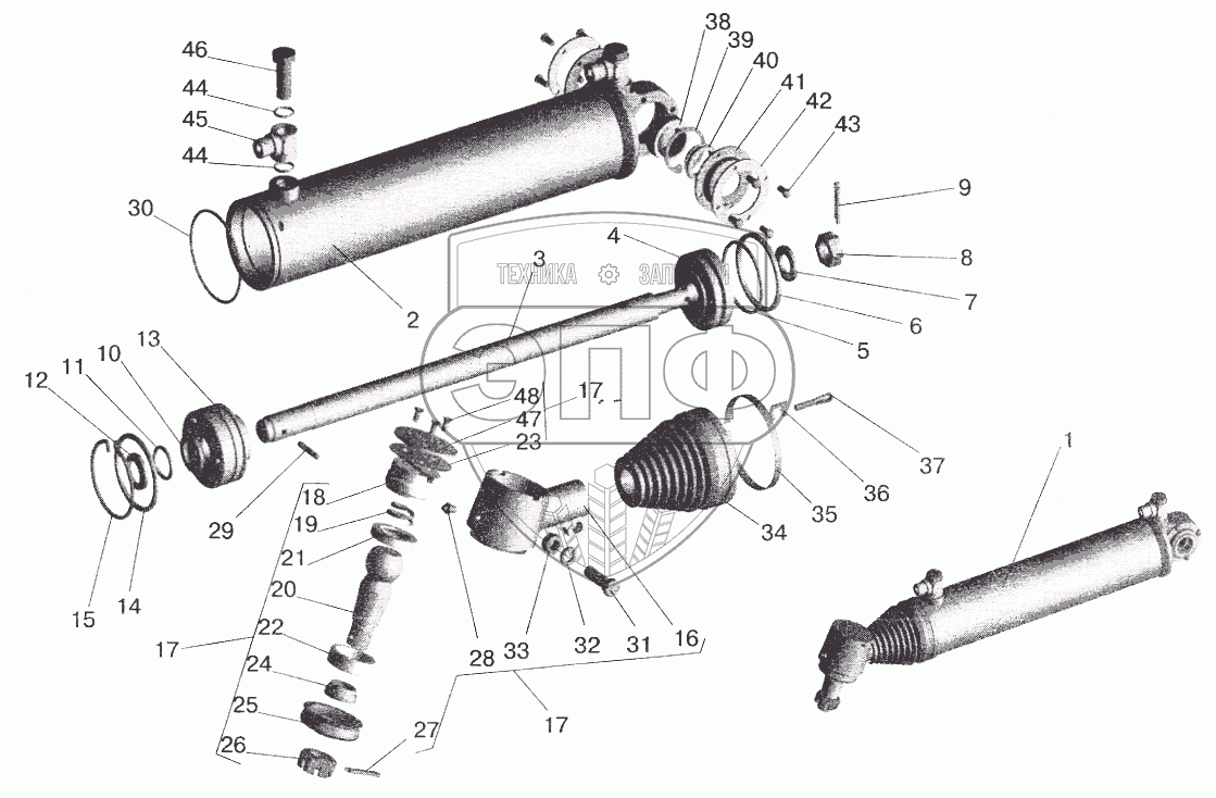 Каталог запасных частей к технике: МАЗ-6422. Силовой цилиндр гидроусилителя рулевого управления