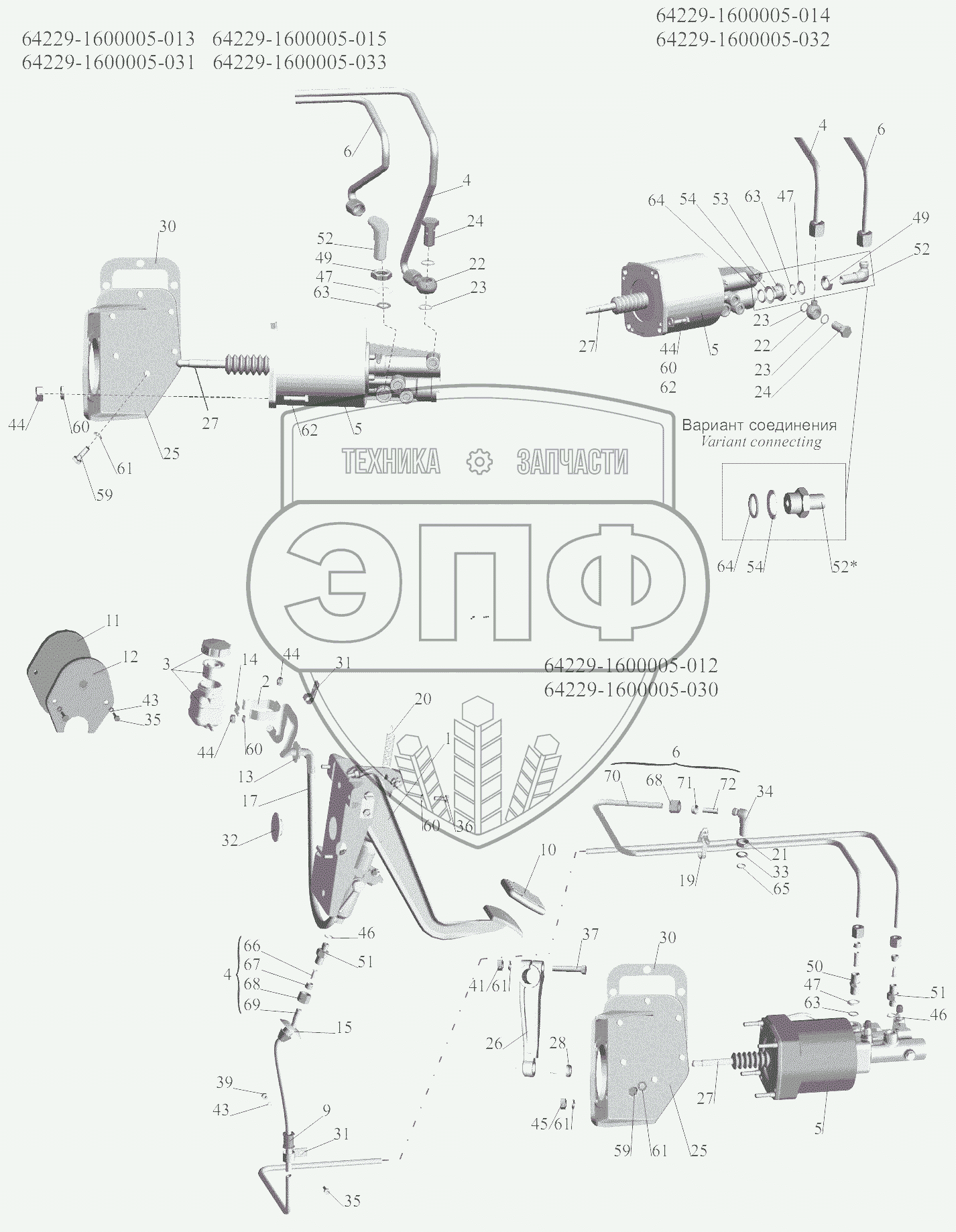 Каталог запасных частей к технике: МАЗ-6422, 5432. Механизм управления сцеплением