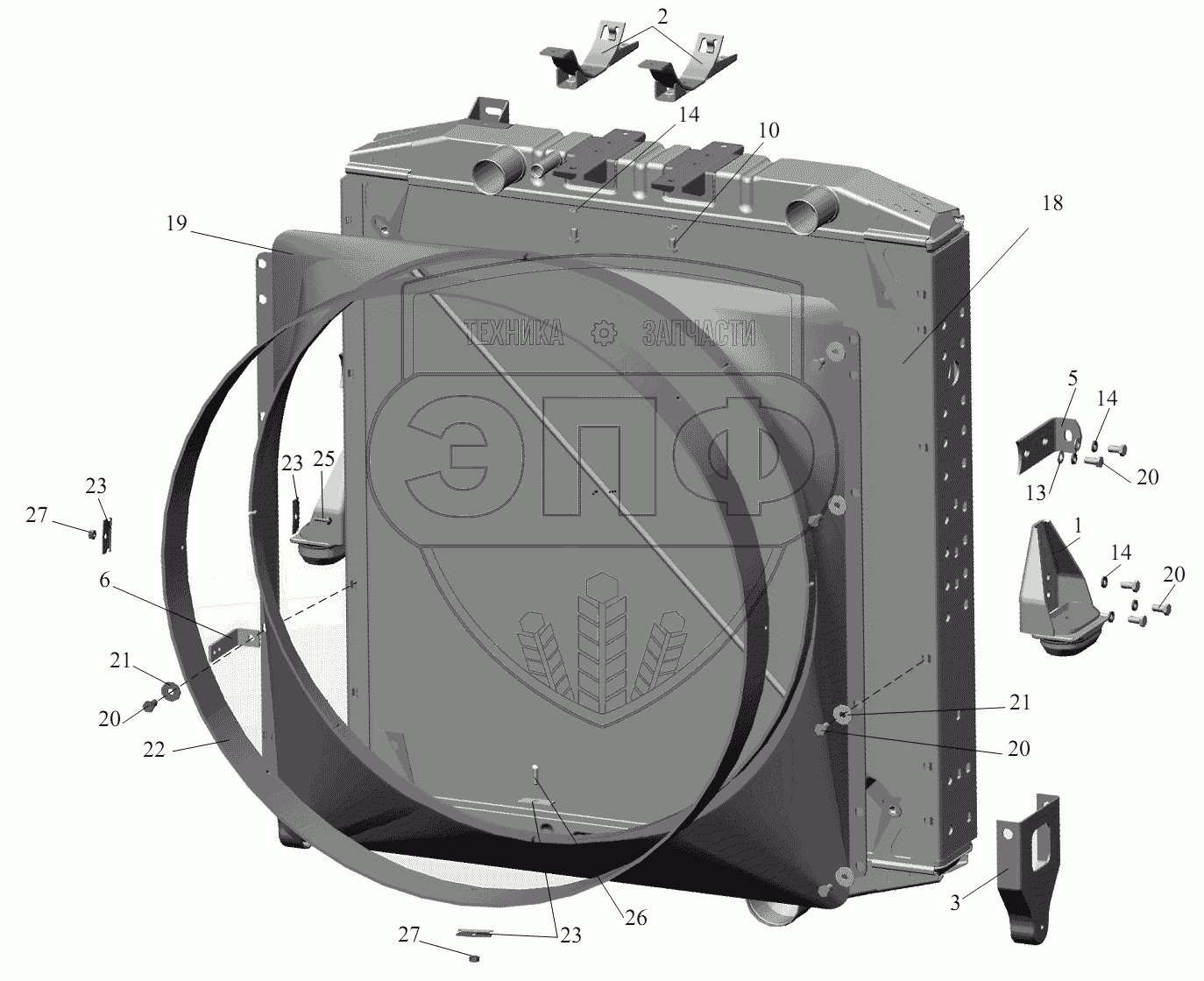 Каталог запасных частей к технике: МАЗ-6422, 5432. Радиатор с кожухом