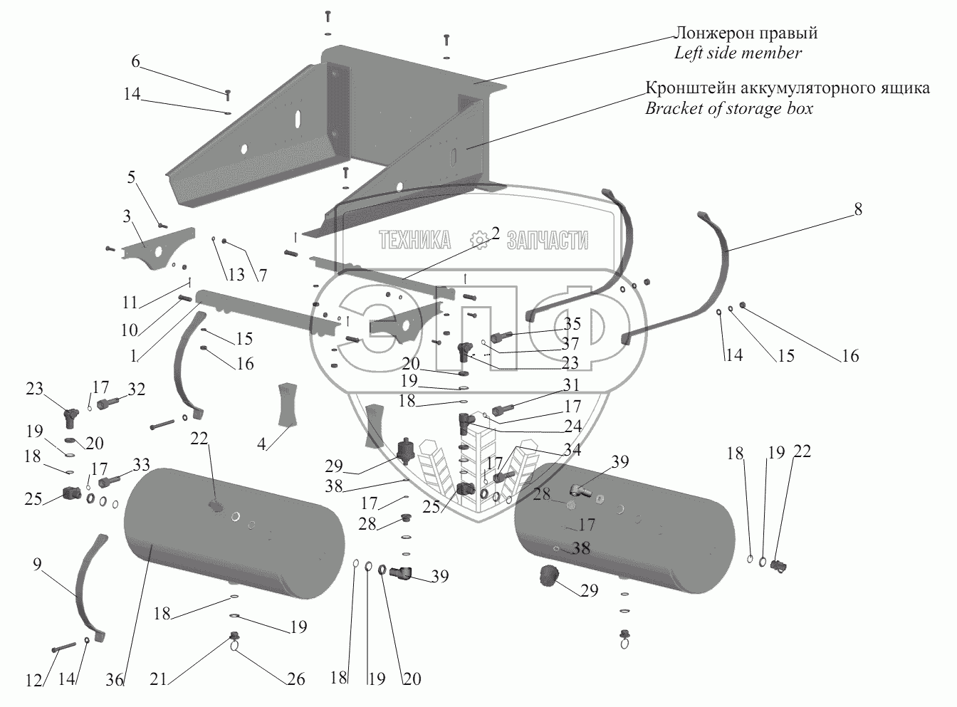 Каталог запасных частей к технике: МАЗ-6422, 5432. Установка ресиверов 64221-3513004
