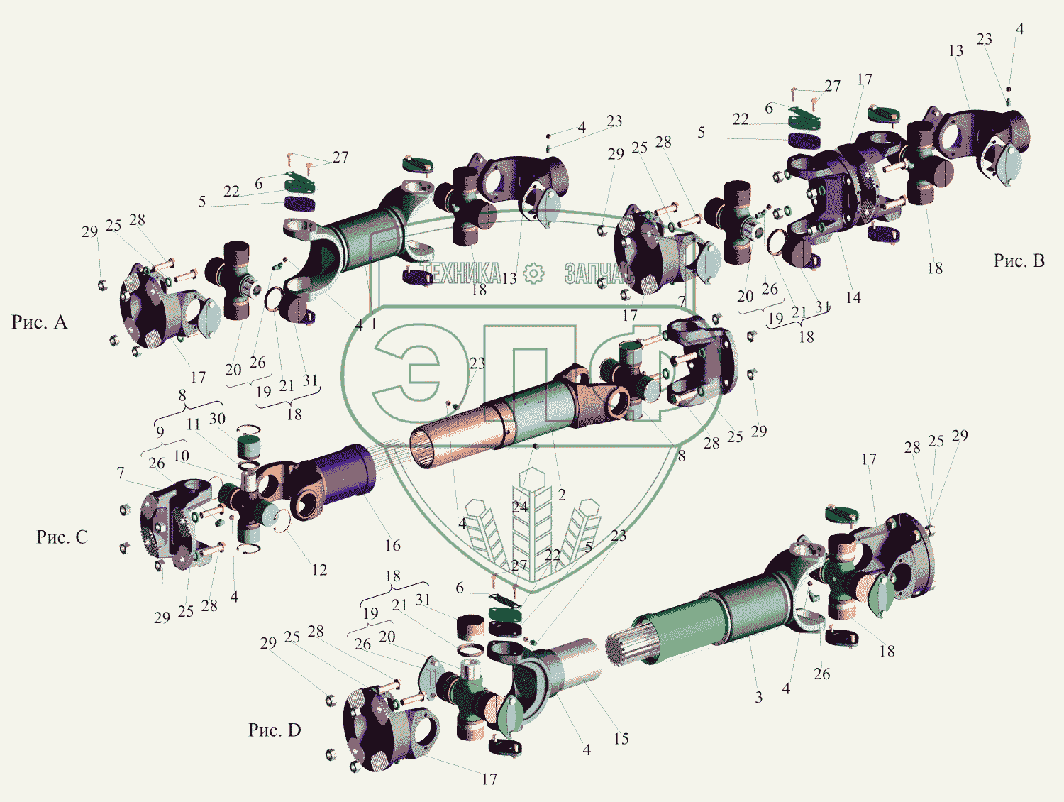 Каталог запасных частей к технике: МАЗ-642505, 642508. Карданные валы