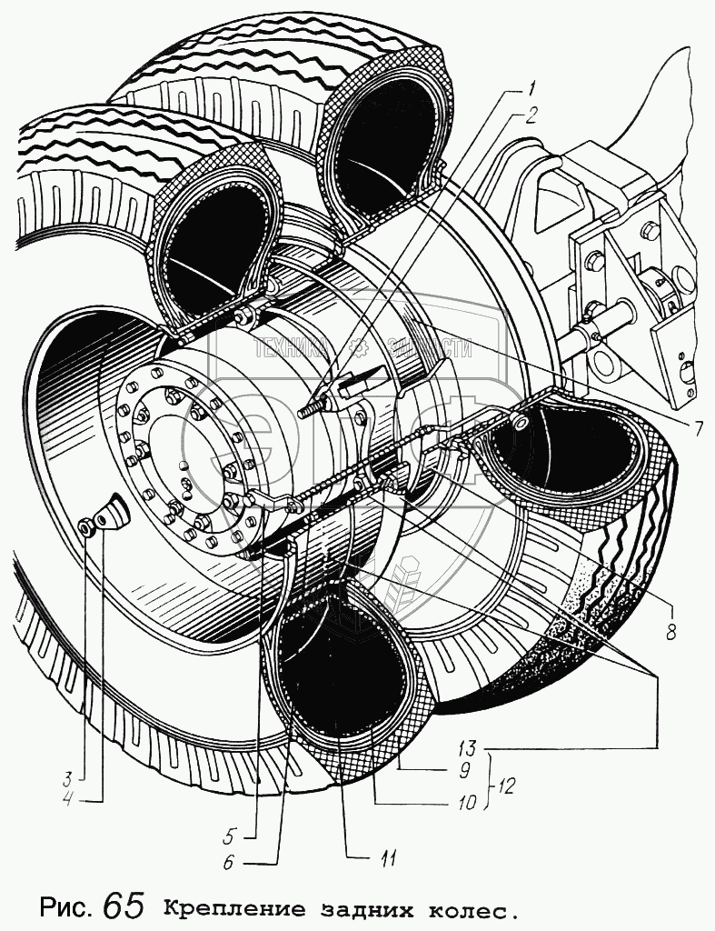 Каталог запасных частей к технике: МАЗ-64255. Крепление задних колес