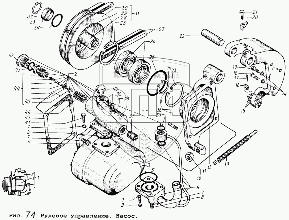 Каталог запасных частей к технике: МАЗ-64255. Рулевое управление. Насос