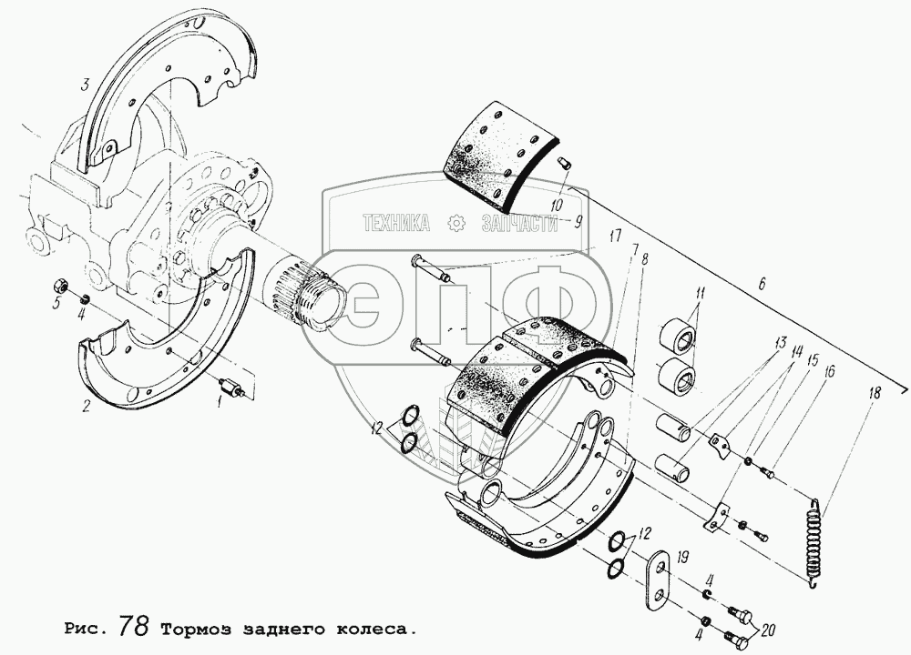 Каталог запасных частей к технике: МАЗ-64255. Тормоз заднего колеса
