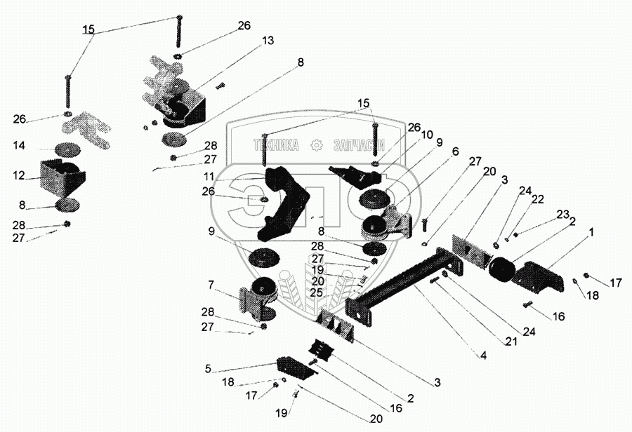 Каталог запасных частей к технике: МАЗ-643068. Крепление двигателя 64302-1001002