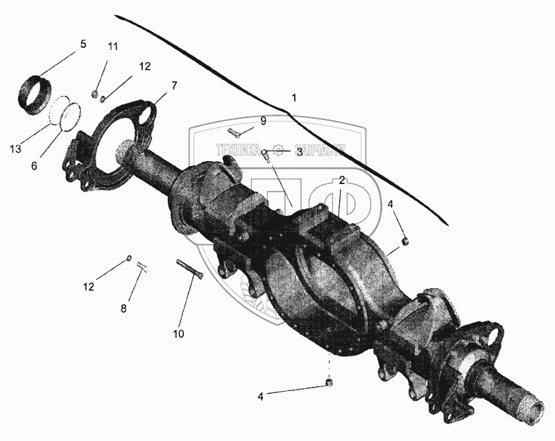 Каталог запасных частей к технике: МАЗ-643068. Мост задний. Картер моста
