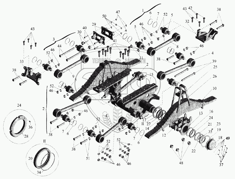 Каталог запасных частей к технике: МАЗ-643068. Подвеска балансирная