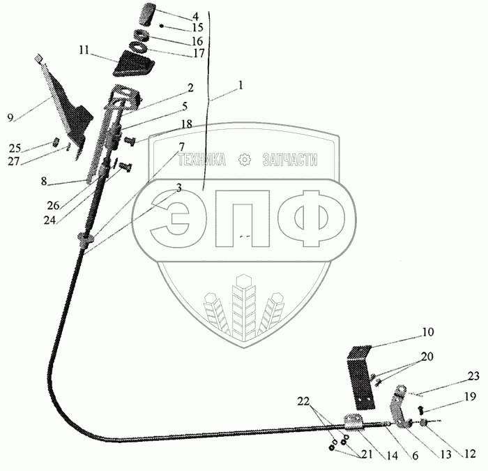 Каталог запасных частей к технике: МАЗ-643068. Привод останова двигателя
