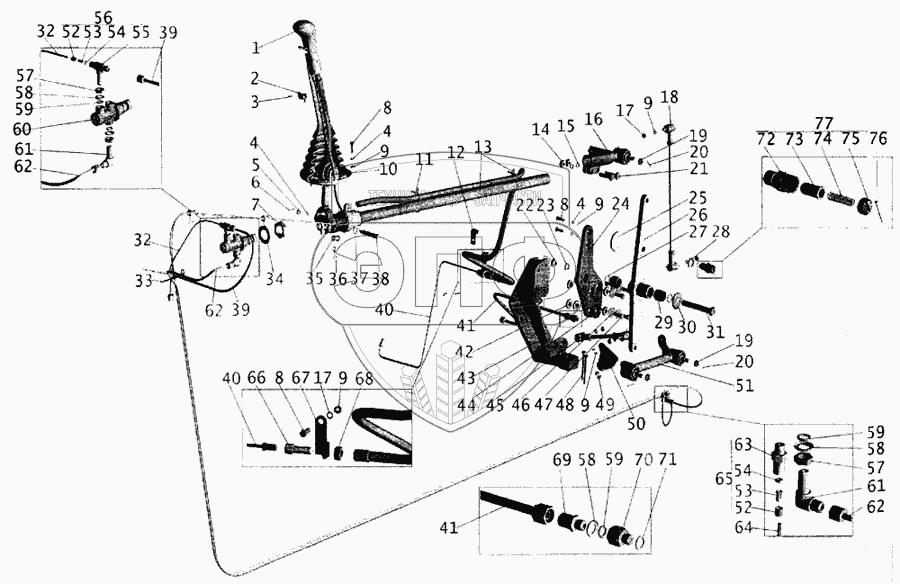 Каталог запасных частей к технике: МАЗ-643068. Привод переключения КП