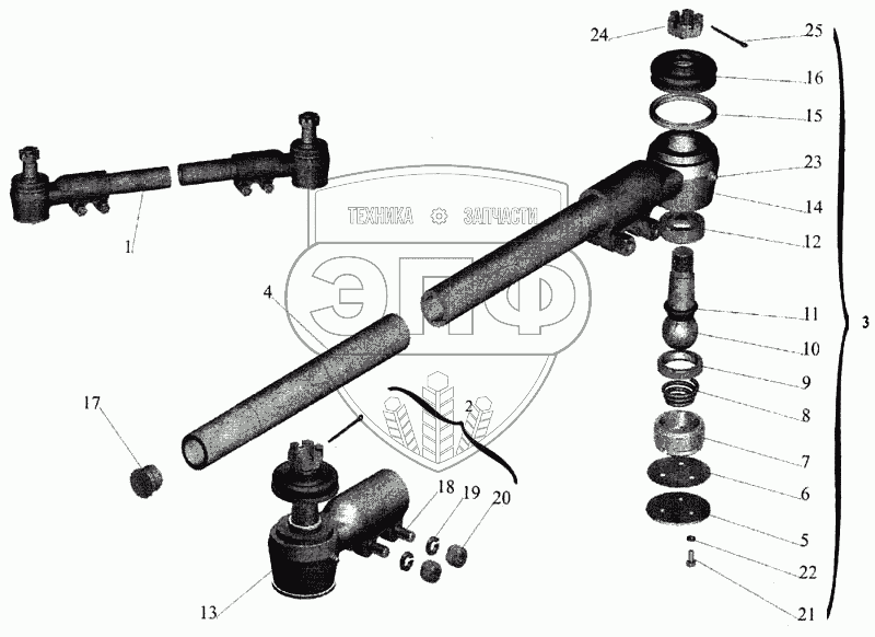 Каталог запасных частей к технике: МАЗ-643068. Тяга поперечная рулевая