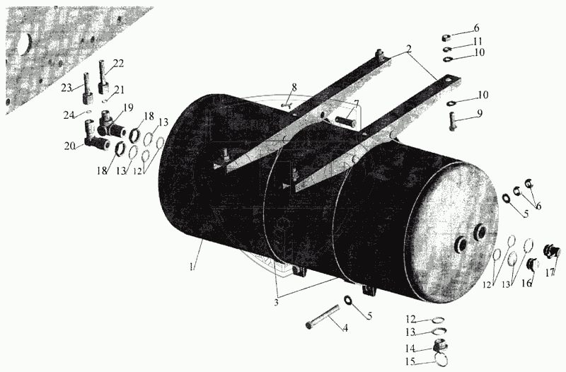 Каталог запасных частей к технике: МАЗ-643068. Установка ресивера и присоединительной арматуры