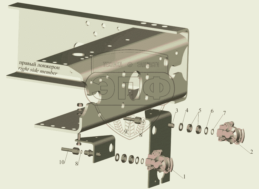 Каталог запасных частей к технике: МАЗ-650108. Пневмовывод к прицепу 555105-3521004