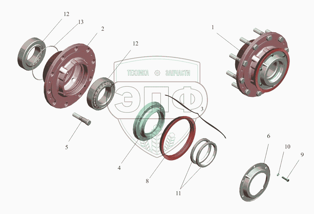 Каталог запасных частей к технике: МАЗ-650108. Ступица заднего, среднего моста