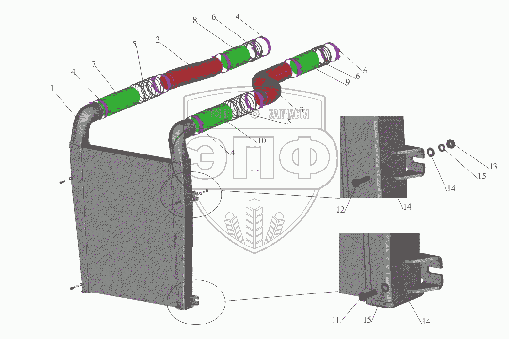Каталог запасных частей к технике: МАЗ-650108. Установка системы охлаждения наддувочного воздуха