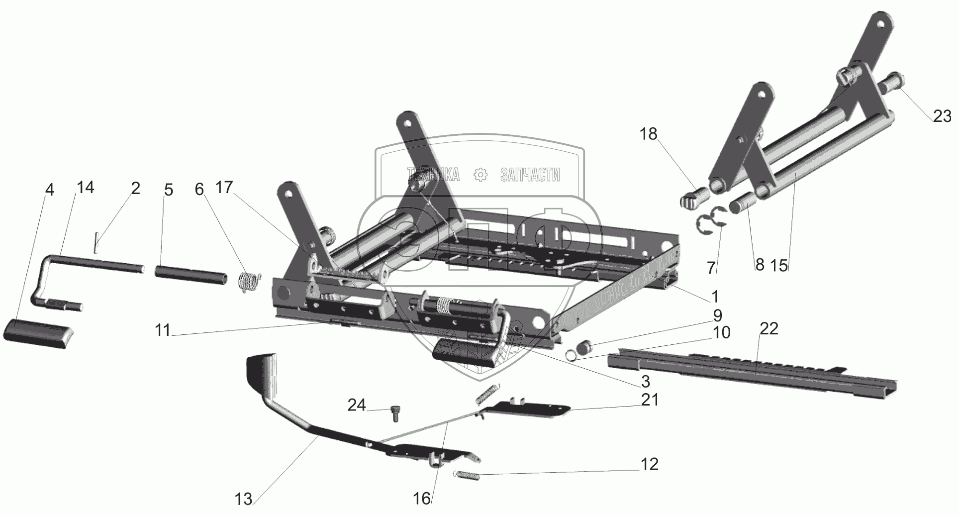 Каталог запасных частей к технике: МАЗ-650119. Механизм регулирования высоты