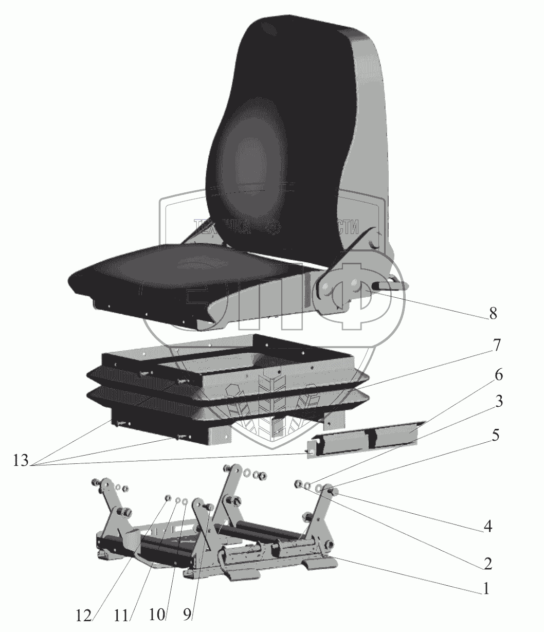Каталог запасных частей к технике: МАЗ-650119. Сидение 6430-6800010