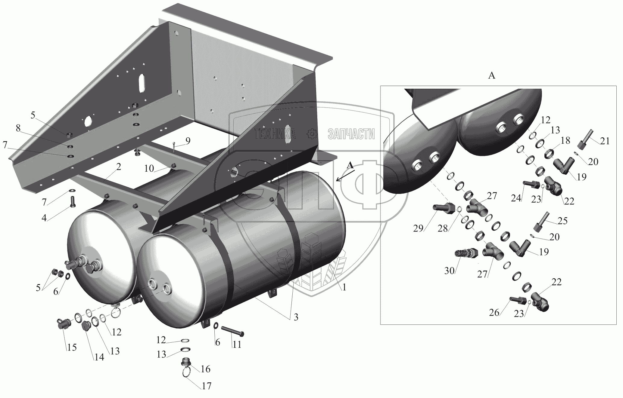 Каталог запасных частей к технике: МАЗ-650119. Установка ресиверов 643020-3513004