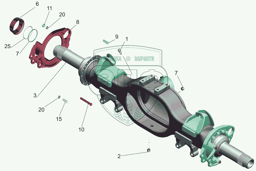 Каталог запасных частей к технике: МАЗ-6501B9. Картер моста. 6501W6-2501010-000