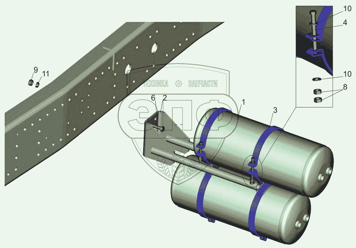 Каталог запасных частей к технике: МАЗ-6501B9. Крепление ресиверов 650119-3513006