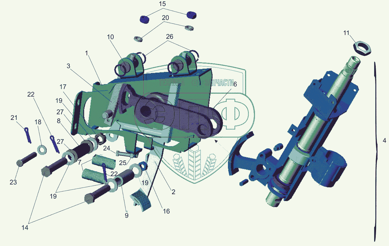 Каталог запасных частей к технике: МАЗ-6501B9. Кронштейн с колонкой 5440-3403008