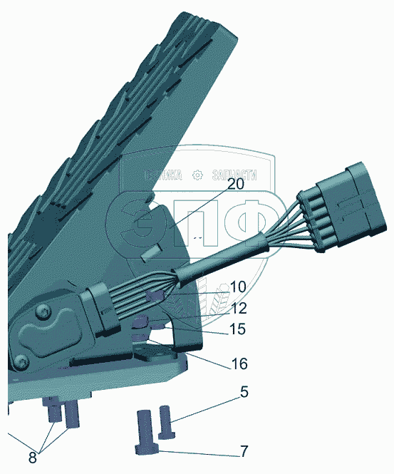 Каталог запасных частей к технике: МАЗ-6501B9. Педаль с переходником 437143-1108005