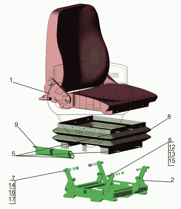 Каталог запасных частей к технике: МАЗ-6501B9. Сиденье переднее 6430-6810010