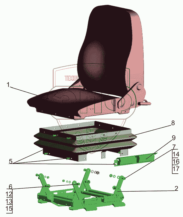 Каталог запасных частей к технике: МАЗ-6501B9. Сиденье водителя 6430-6800010