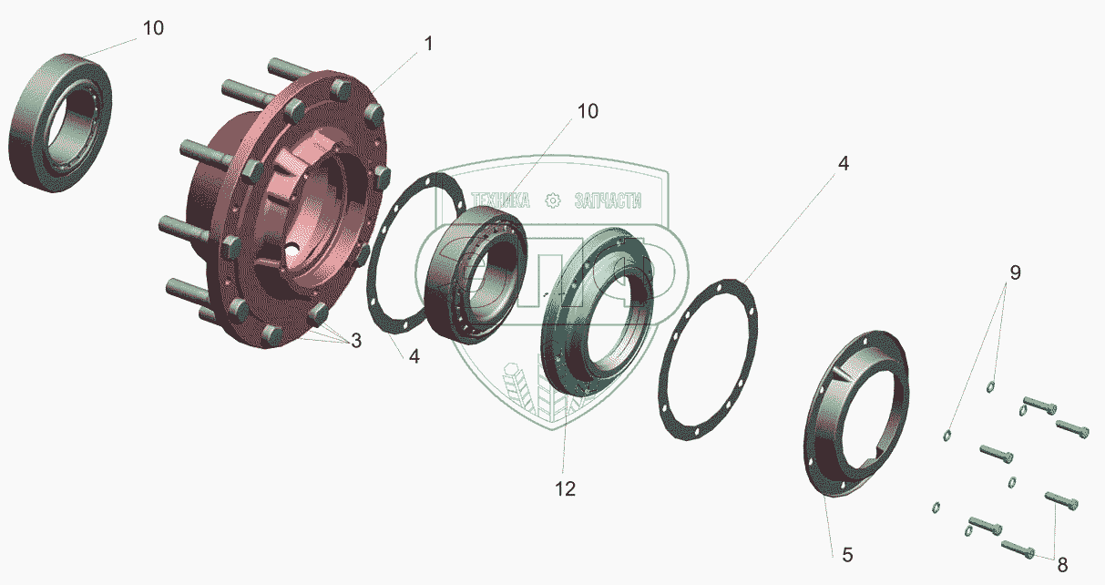 Каталог запасных частей к технике: МАЗ-6501B9. Ступица с крышкой