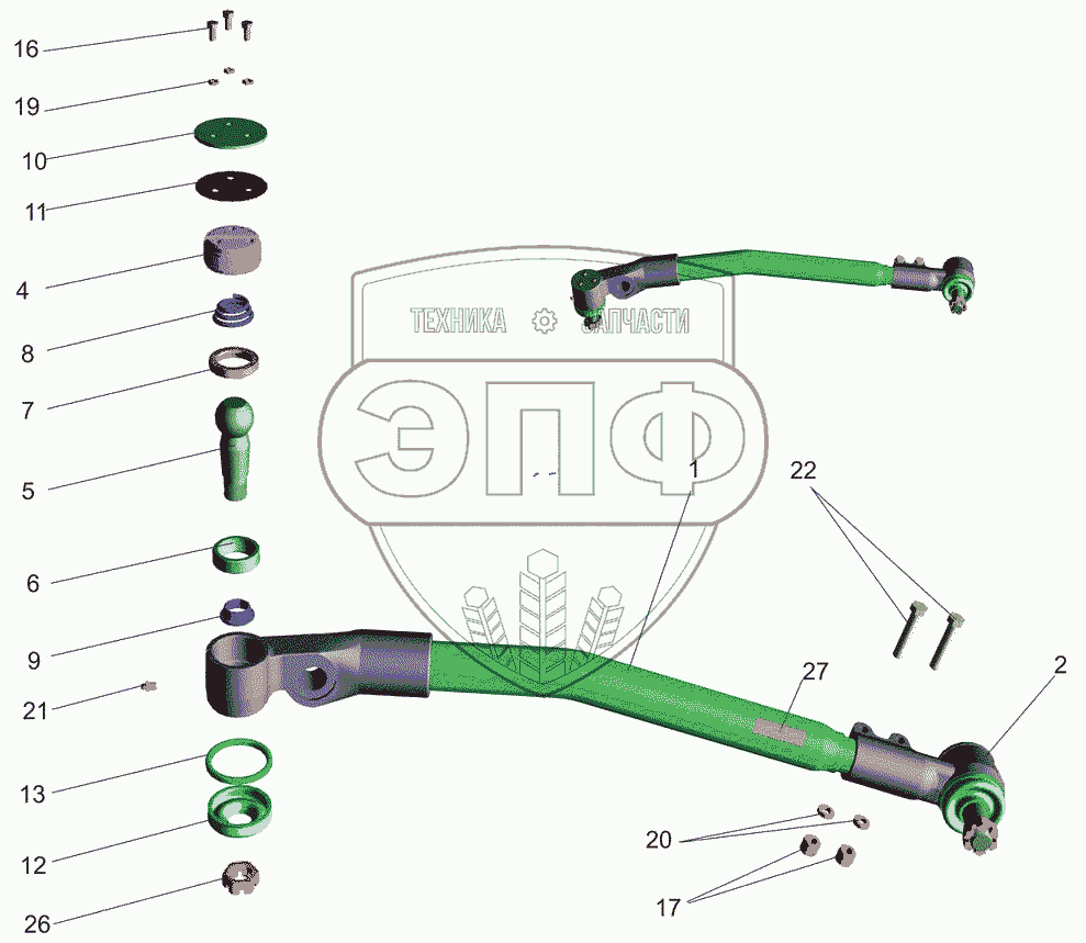 Каталог запасных частей к технике: МАЗ-6501B9. Тяга продольная 5440-3003010