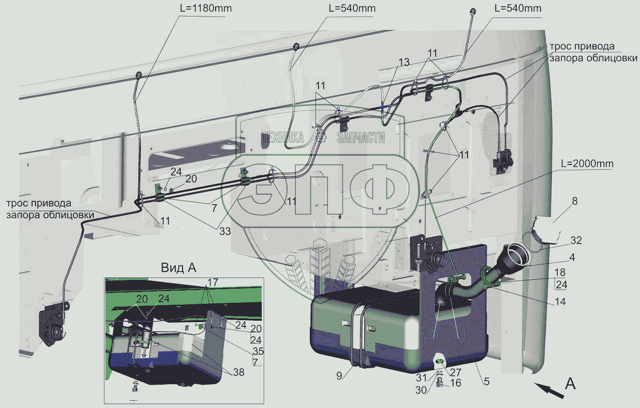 Каталог запасных частей к технике: МАЗ-6501B9. Установка омывателя 6430-5200008