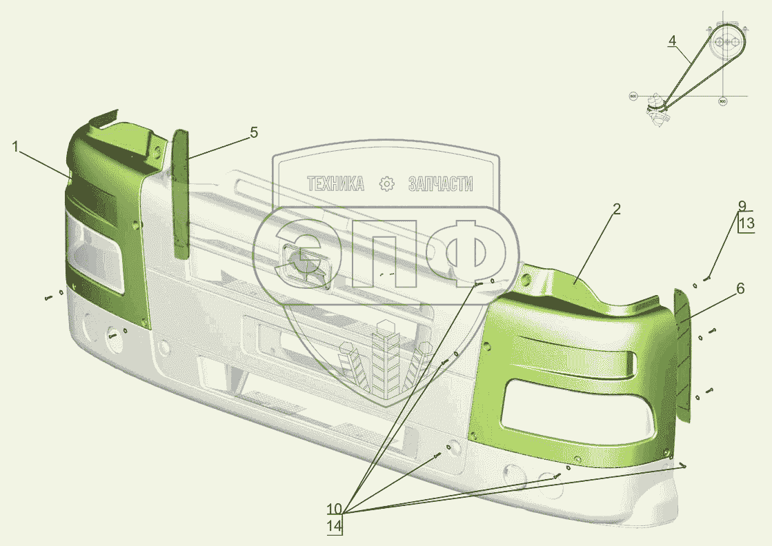 Каталог запасных частей к технике: МАЗ-6501B9. Установка панелей бампера 643019-2800005