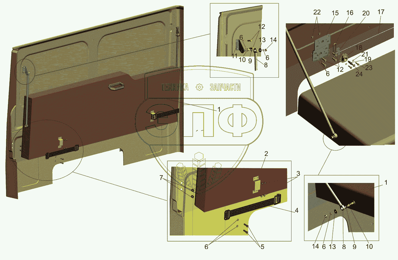 Каталог запасных частей к технике: МАЗ-6501B9. Установка спального места 6501-8200010