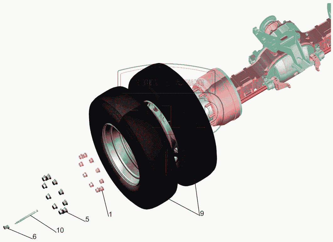 Каталог запасных частей к технике: МАЗ-6501B9. Установка задних колес